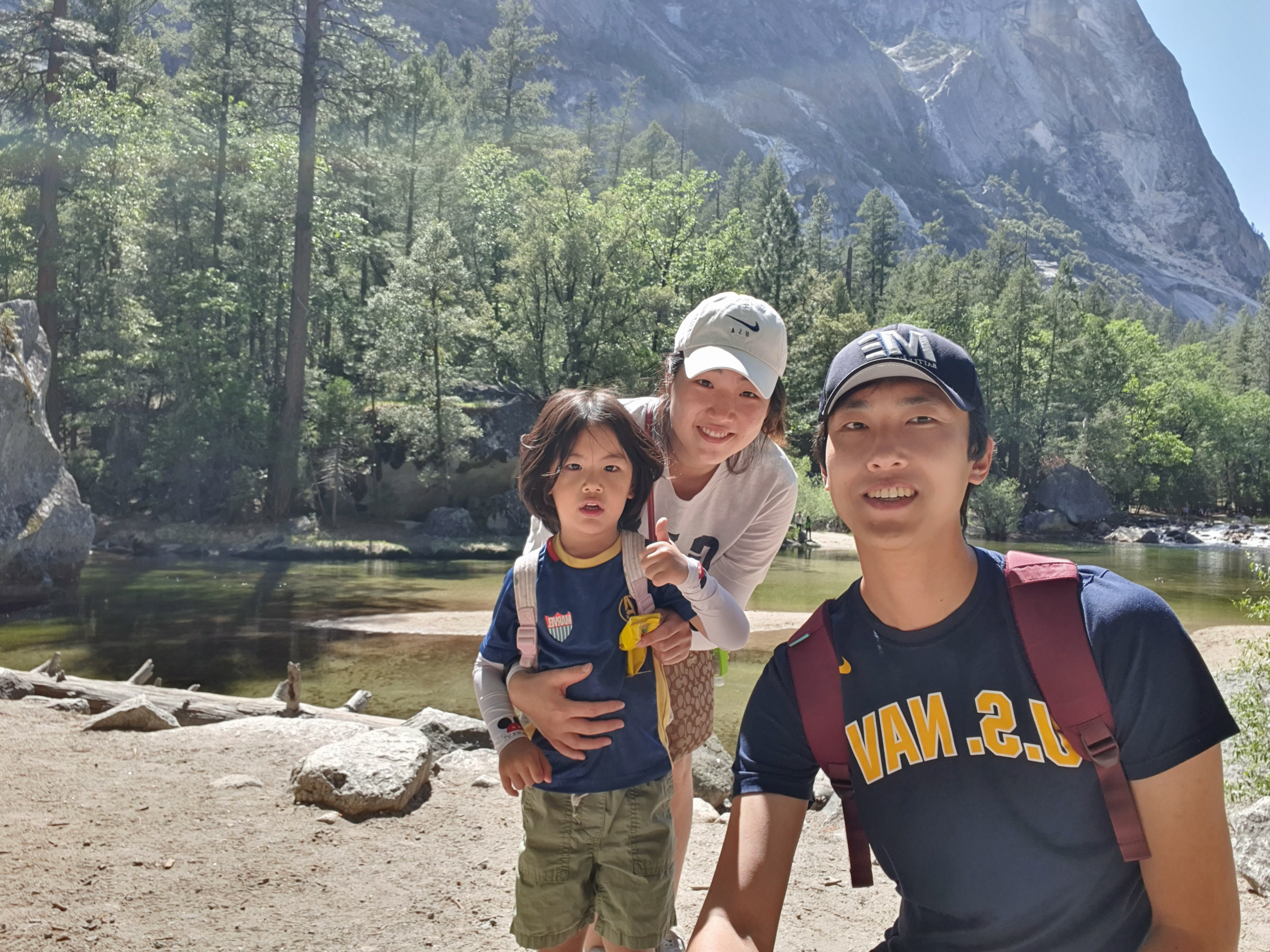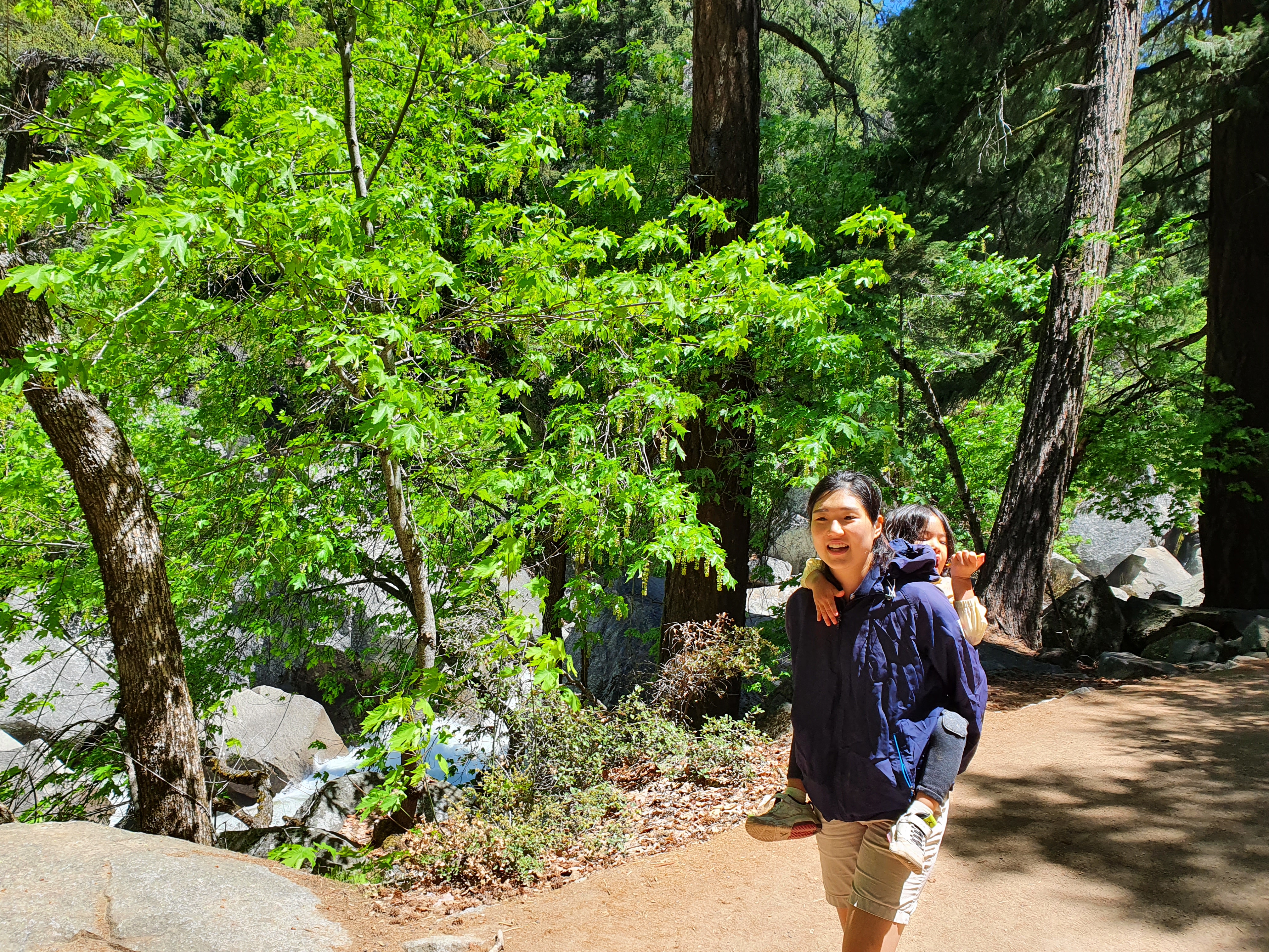 Vernal falls 초입길 아직 험난한 일정을 예상 못한 아빠의 찐 웃음.